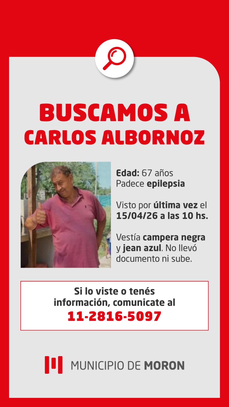 IMPORTANTE: Hay un pedido de búsqueda urgente para dar con el paradero de Carlos Albornoz, de 67 años, quien