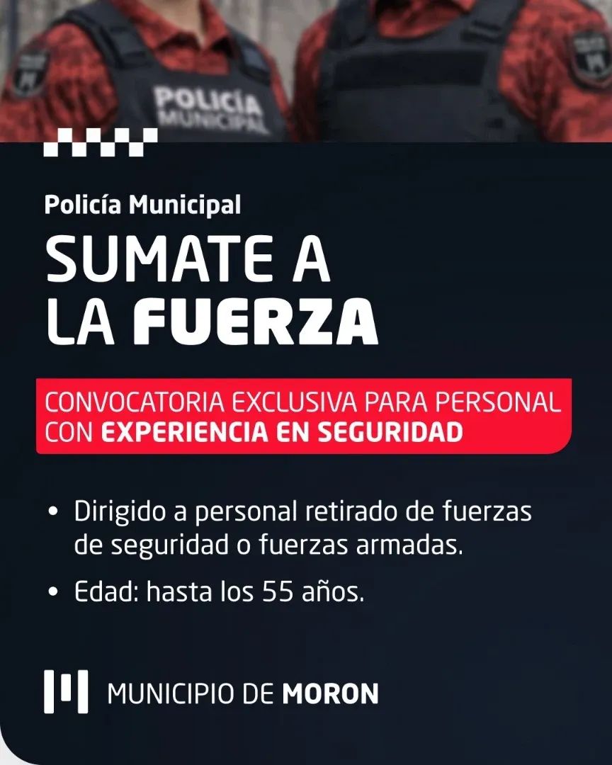 MORÓN: CONVOCAN A PERSONAL CON EXPERIENCIA EN SEGURIDAD PARA SUMARSE A LA POLICÍA MUNICIPAL