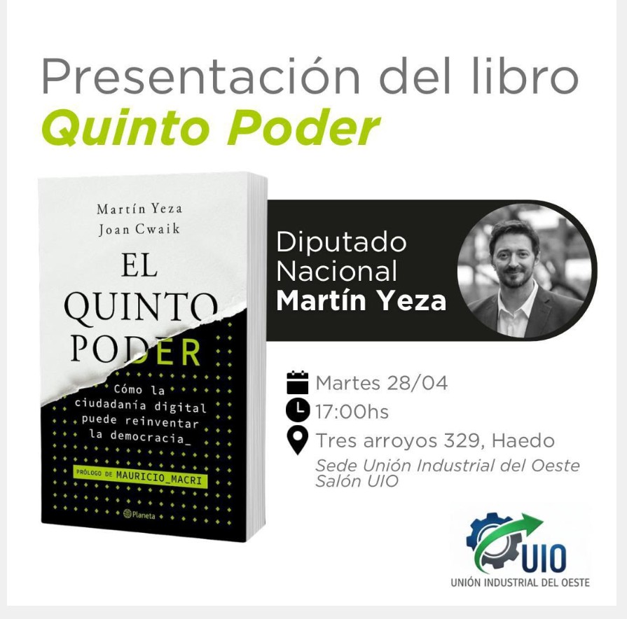 LA UIO INVITA A LA PRESENTACIÓN DEL LIBRO “EL QUINTO PODER” CON LA PRESENCIA ESPECIAL DEL DIPUTADO NACIONAL MARTÍN YEZA
