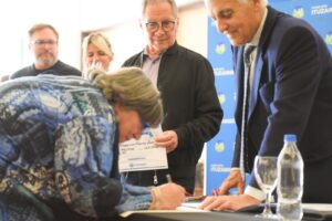El Intendente, Alberto Descalzo, junto al Jefe de Gabinete, Pablo Descalzo, participaron de la firma de más de 30 nuevas escrituras para que vecinos y vecinas de Ituzaingó puedan regularizar su condición habitacional.