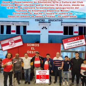 Hoy, viernes 16 de junio, desde las 16, se llevará a cabo el acto académico del Día de la Bandera, en el Club Deportivo Morón, y se inaugurará formalmente el “Instituto de Enseñanza Deportivo Morón”.
