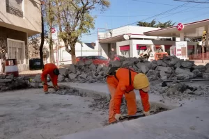MORON: Continúan las obras de repavimentación y reconstrucción de veredas en la Av. Perón