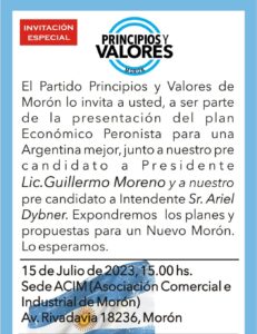 El economista y exsecretario de Comercio, precandidato a presidente de la Nación con su fuerza «Principios y Valores» se presentará este sábado 15 a las 15 hs en @camaracomerciomoron , Riv. 18236, junto al empresario del plástico y