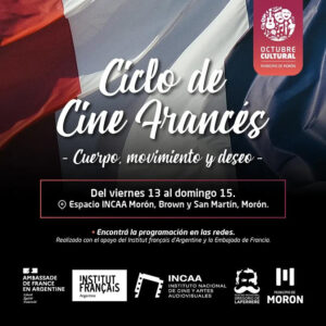 El Municipio de Morón realiza el ciclo “Cuerpo, movimiento y deseo, Narrativas actuales en el cine francés” desde hoy viernes 13 al domingo 15 de octubre en el Espacio INCAA del Teatro Municipal Gregorio de Laferrere (Brown y San Martín, Morón). La muestra cuenta con el apoyo del Institut Français y la Embajada de Francia en Argentina.