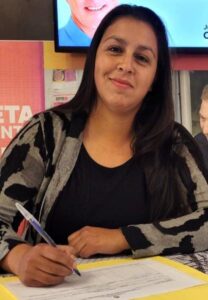 Daniela tiene 34 años, es de Morón sur, del barrio San Fransisco, de toda la vida, está casada, tiene 2 hijas, y está a la espera de su tercer hijo.
