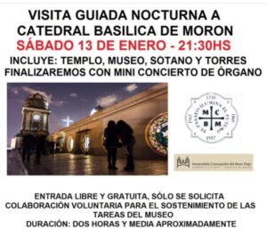 Este sábado 13 de enero a las 21:30 hs se llevará a cabo una nueva visita guiada nocturna a Catedral Basílica de Morón.