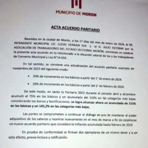 Lo declaró hoy al medio día, el concejal de Juntos por el Cambio @hcd.moron , Francisco Mones Ruiz, con referencia al acuerdo de paritarias firmado hoy por el intendente de Morón Lucas GHI y los municipales.