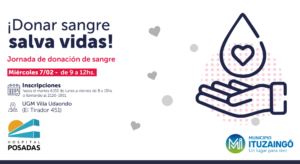La @municipioituzaingo @descalzopablo informa a los vecinos y vecinas que el próximo 7 de febrero de 9 a 12hs realizará una jornada de donación de sangre en la Unidad de Gestión Municipal Udaondo (El Tirador 451) junto al Hospital Posadas @hospitalposadas