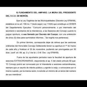 » que haga lugar a la presente acción de AMPARO POR MORA» ordenándo al presidente del HCD de Morón, el pronto despacho del decreto convocando a SESIÓN EXTRAORDINARIA…»