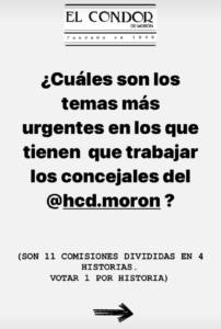Los cuatro temas son los más votados por 1275 votantes que participaron en la ENCUESTA sobre ¿Cuáles son los temas más urgentes en los que tienen que trabajar los concejales del @hcd.moron ?