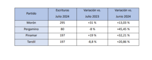 En tanto que la comparación interanual arrojó números positivos en Morón (+31 %) y Pinamar (+19 %), y negativos en Pergamino (-8 %) y Tandil (-8,8 %).