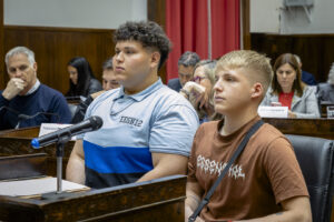Se dió inicio con la presentación de la banca abierta solicitada por estudiantes de 6º 1° de la Escuela de Educación Secundaria Nº 12. La presentación estuvo a cargo de los estudiantes Iñaki Morgulis y Milton Broso, quienes presentaron un proyecto de mejoras edilicias vinculadas al espacio deportivo de su institución a fin de propiciar el acceso al deporte con una mirada inclusiva respecto de las personas con discapacidad. Dicho proyecto será trabajado en las distintas comisiones del Concejo Deliberante. La presentación fue acompañada por la Secretaría de Educación del Municipio, Maria José Peteira. @majomoron73