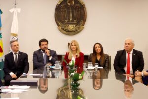 En la reunión estuvieron presentes el Presidente del Colegio, Guillermo Longhi @guillermolonghi ; la Vicepresidente 2°, Sabina Podrez Yaniz; y la Secretaria de Gobierno, Carina Pérez Lozano.