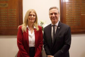 La Vicegobernadora bonaerense, Verónica Magario y el presidente del Colegio de Escribanos de la Provincia de Buenos Aires, Guillermo Longhi