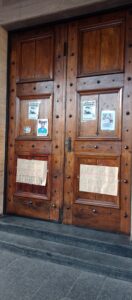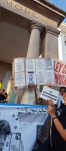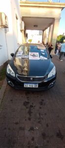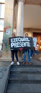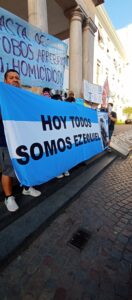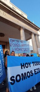 Se pegaron fotos de víctimas de hechos delictivos como el Dr. Juan Carlos Cruz, asesinado en agosto de 2023 en Morón sur, y el asesinato a Ezequiel, entre otros, y banderas de reclamo de mayor SEGURIDAD.