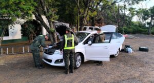 Durante la inspección del rodado, los uniformados detectaron siete (7) bolsas con pastillas escondidas dentro del apoyabrazos ubicado entre los asientos delanteros.