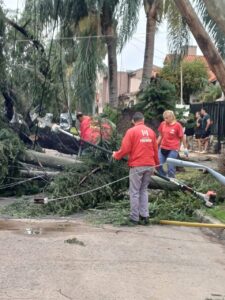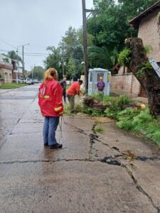 CASTELAR: TRAS LOS DESTROZOS DE LA FUERTE TORMENTA, MANOS A LA OBRA DE LA CUADRILLA LOCAL