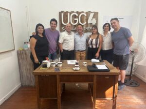 En la foto de izquierda a derecha: Melina Farías, Nicolás Montani, Gustavo Ovando ( presidente de la Cámara local), Antonio Galati ( titular UGC4) y Valeria González (coordinadora de la UGC4), Marcela López y Sebastián Marengo.