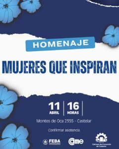 La cámara local @camaradecastelar, entidad presidida por Gustavo Ovando @ovandohogar realizará hoy a las 16 HS un HOMENAJE A «MUJERES QUE INSPIRAN», destacadas personalidades con un importante trabajo en la ciudad.