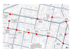 El recorrido del camino de la representación del Vía Crucis que se realizará mañana Viernes a las 17:15, con salida de la parroquia.