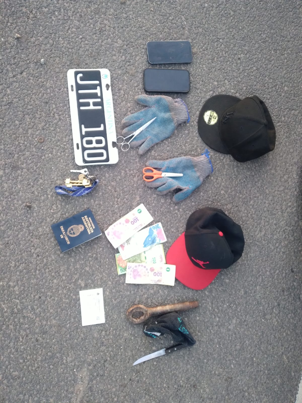 En el interior del rodado, la Policía secuestró un manojo de llaves pertenecientes a la propietaria de la vivienda, O. P., de 76 años, quien se encontraba encerrada en el domicilio durante el intento de robo. Además, se halló una mochila con herramientas varias (entre ellas moladoras y criquet), utilizadas presuntamente para forzar aberturas.