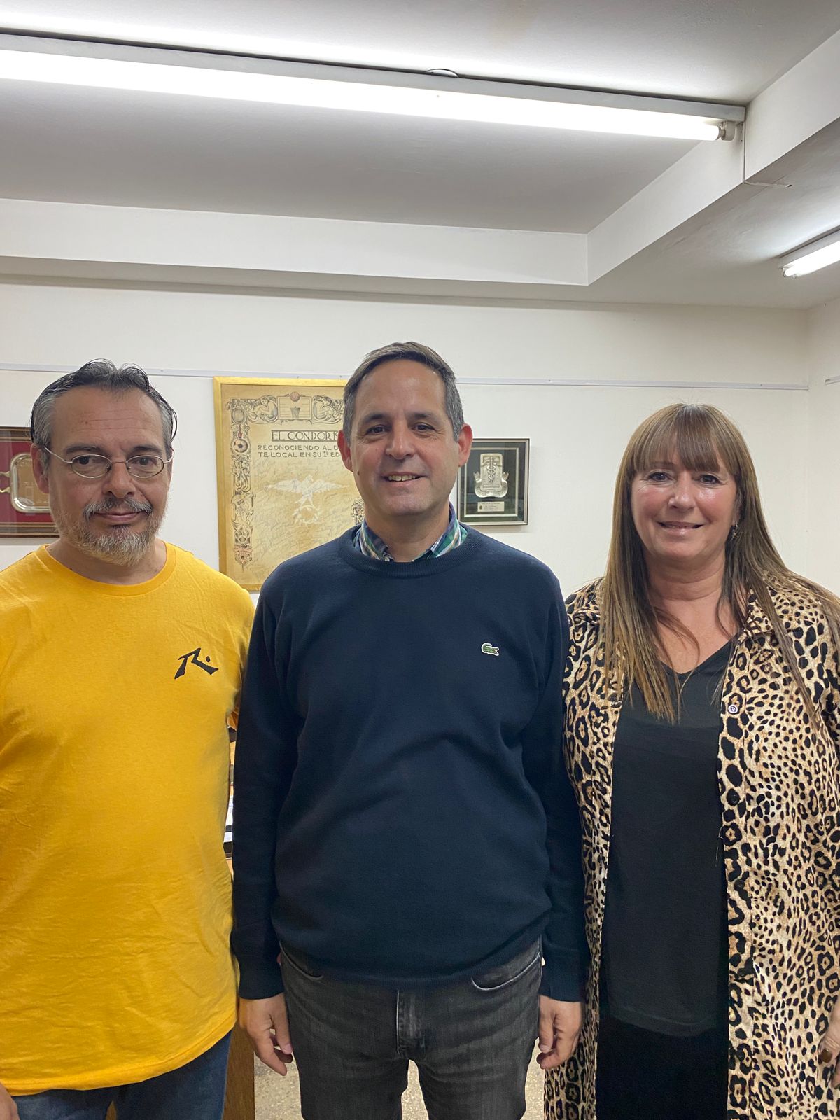 Mariano Spina, concejal electo por Fuerza Patria Morón ( centro) junto a Gustavo Requelme y Paola Mai
