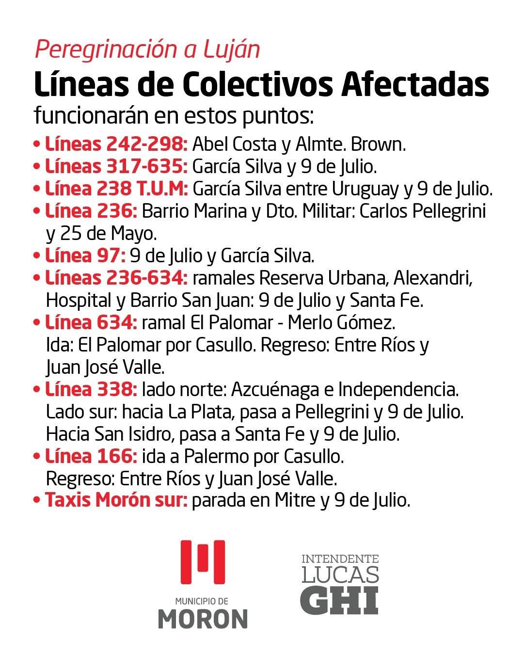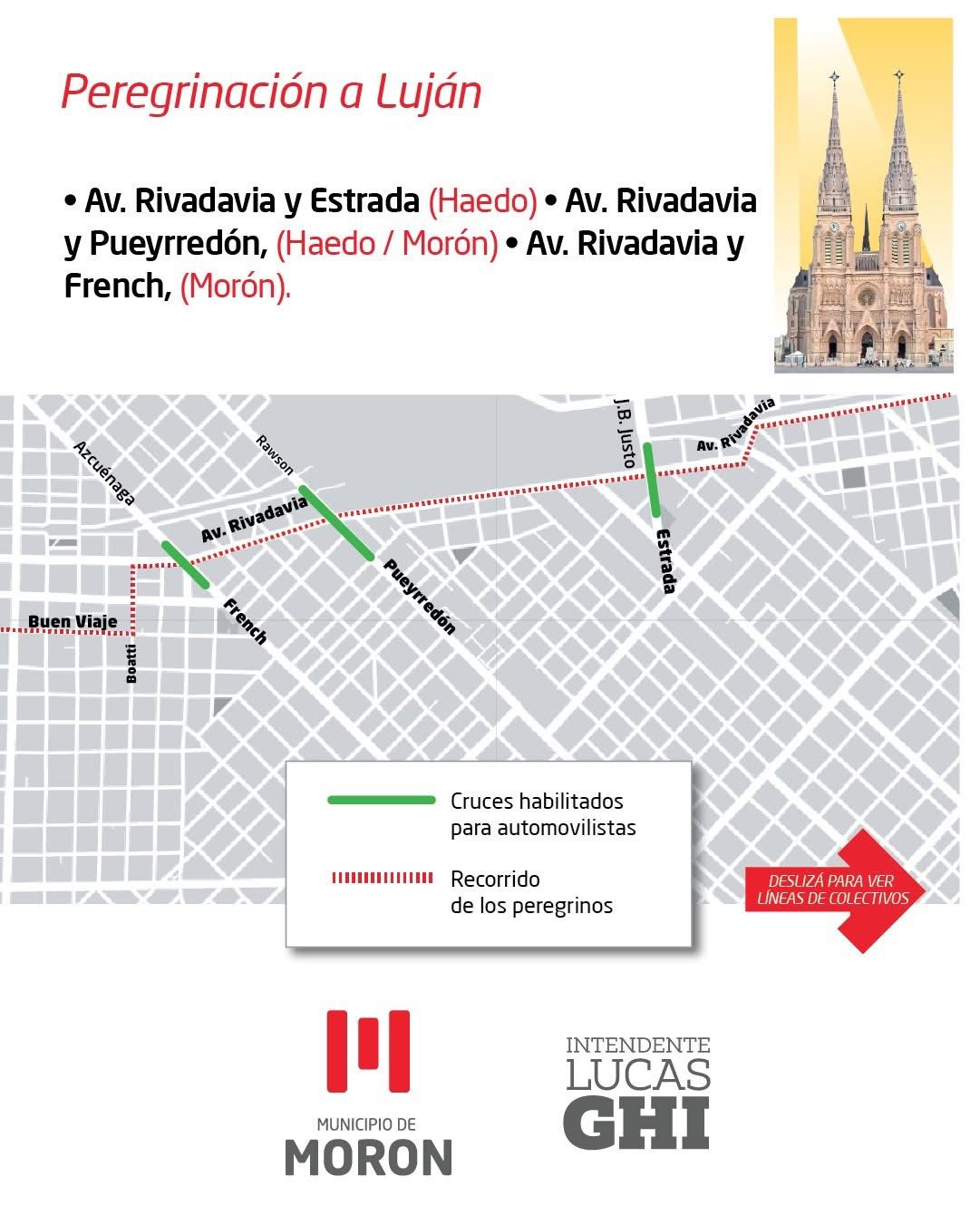 El Municipio de Morón implementa un reordenamiento del tránsito hoy sábado 4 de octubre, con motivo de la 51° Peregrinación Juvenil a Luján. El operativo de los equipos municipales estará orientado a acompañar el recorrido de las y los peregrinos y a garantizar el orden en la circulación del transporte público y vehicular.