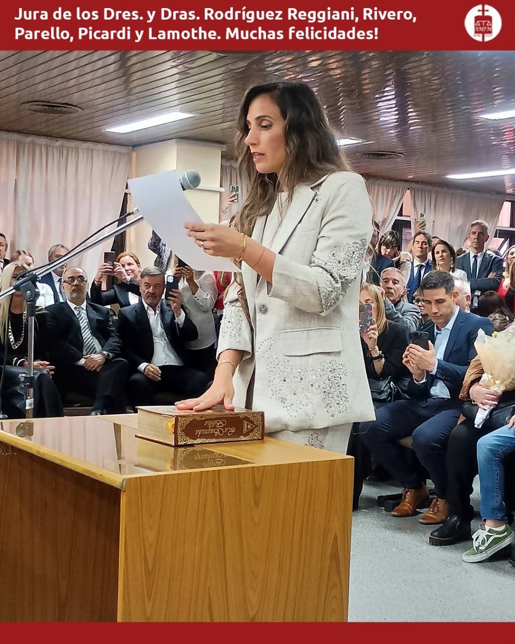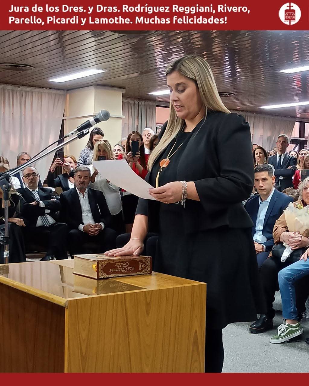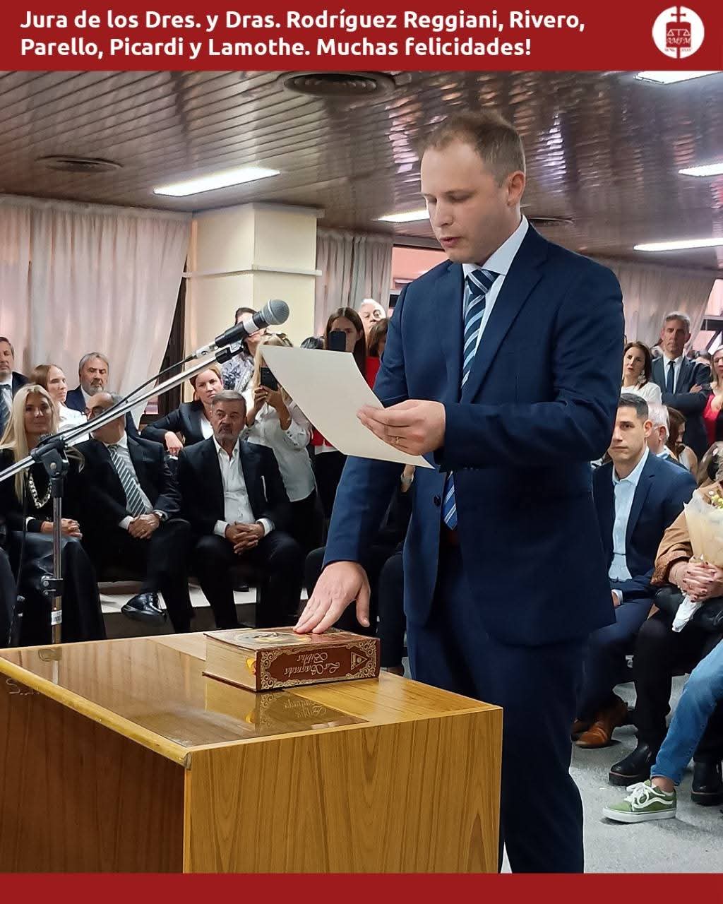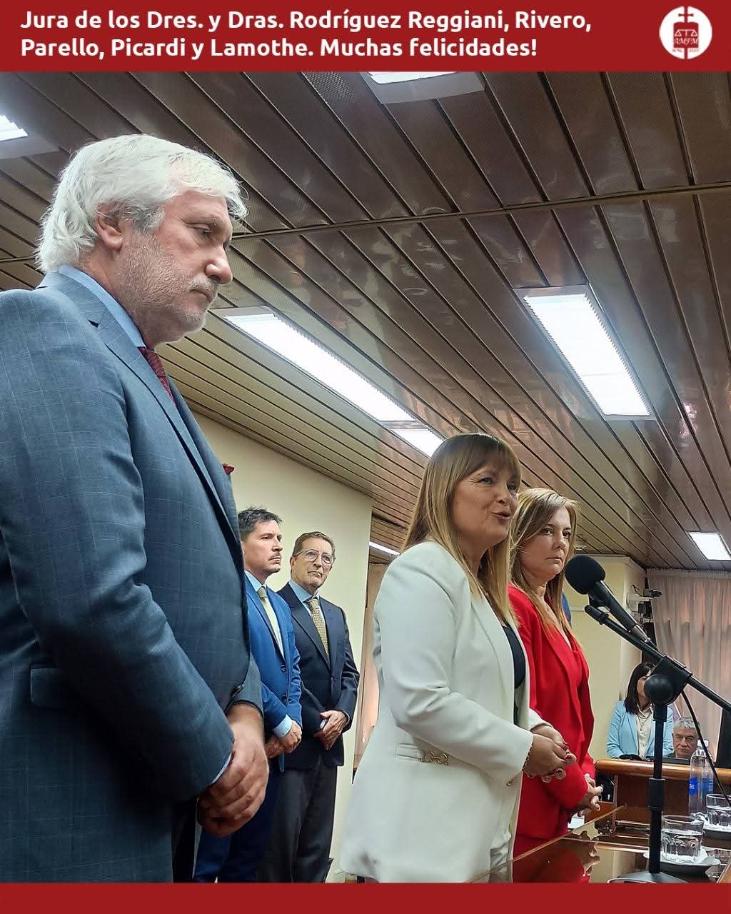 Los Dres. Emiliano Rodríguez Reggiani y Lucio Ezequiel Rivero juraron como Agentes Fiscales; mientras que las Dras. Aldana Valeria Parello y Romina Gisele Picardi asumieron como Defensoras Oficiales ante el Fuero Criminal y Correccional. Por su parte, el Dr. Hernán Luis Lamothe juró como Defensor Oficial ante los Fueros Civil, Comercial y de Familia.
