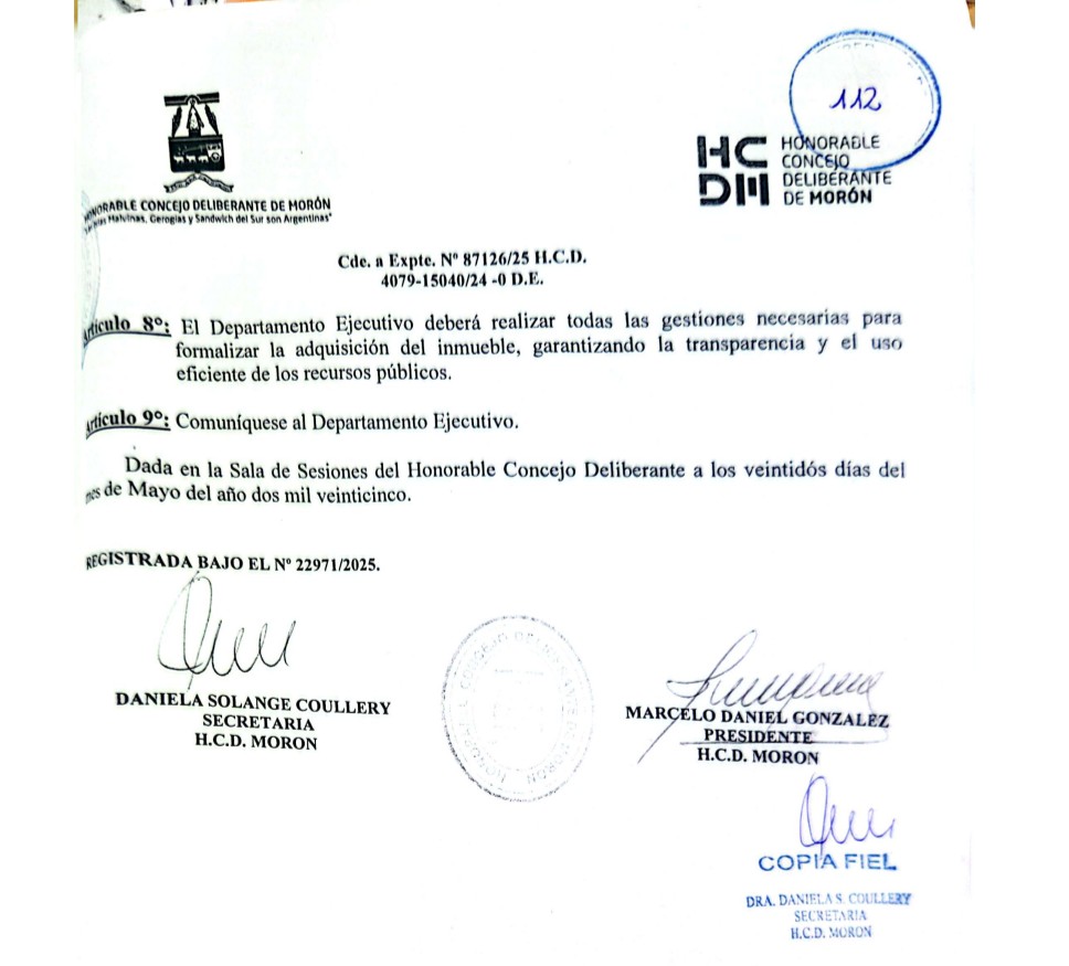 El predio, ubicado en la esquina de Sarmiento y Cañada de Juan Ruiz, volverá finalmente a manos del Municipio tras un fallo del Juzgado Civil y Comercial Nº 3 de Morón, a cargo de la jueza Débora Elena Lelkes, quien ordenó su devolución. La resolución se fundamenta en el estatuto de ARENIL, que establece que, en caso de disolución, el inmueble debe pasar al Hospital de Morón, así como en las ordenanzas municipales Nº 4047 (1961) y Nº 6918 (1978).