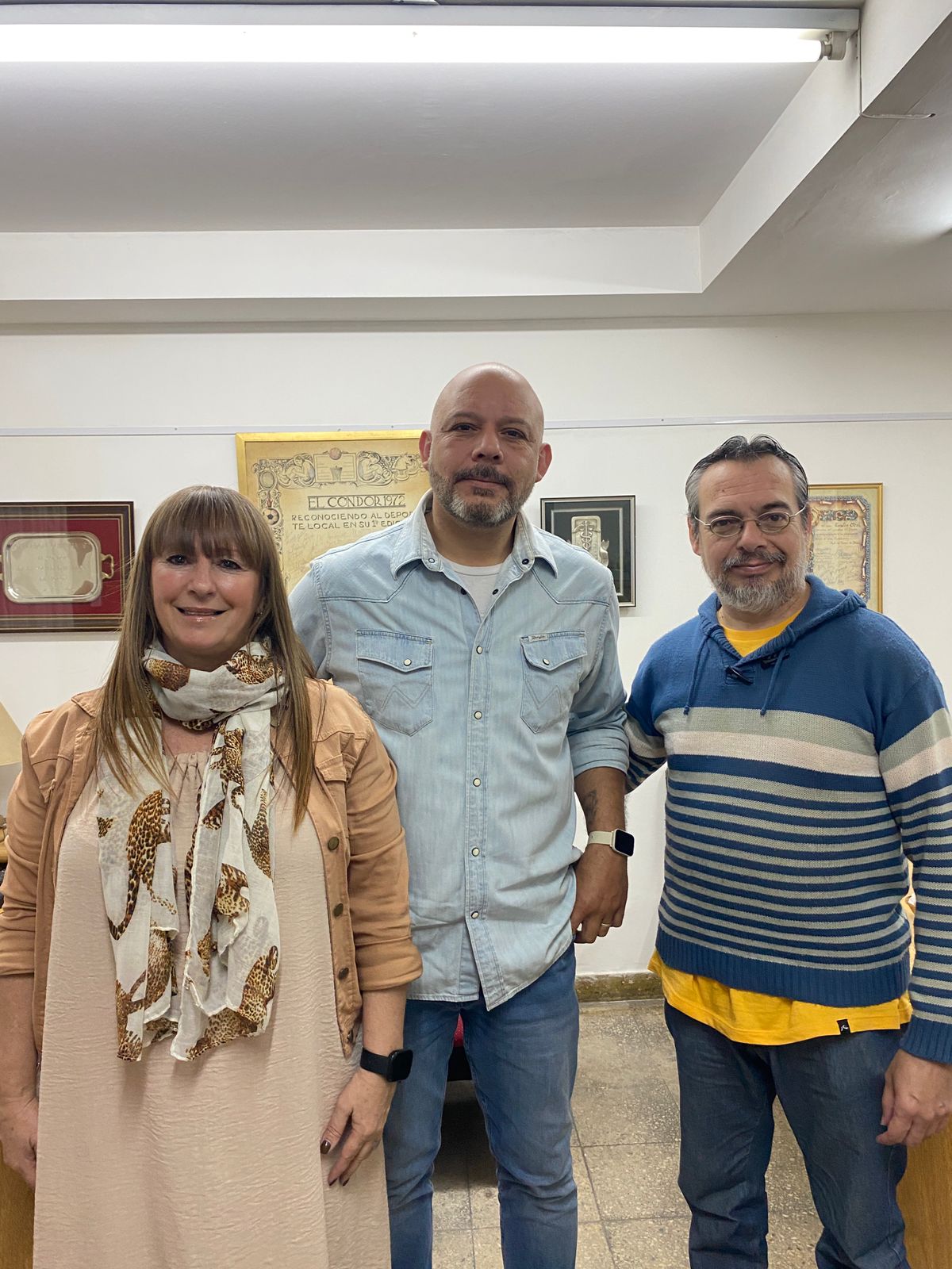 Pablo Miño, concejal electo por LLA Morón ( centro ) junto con los comunicadores Paola Mai y Gustavo Requelme