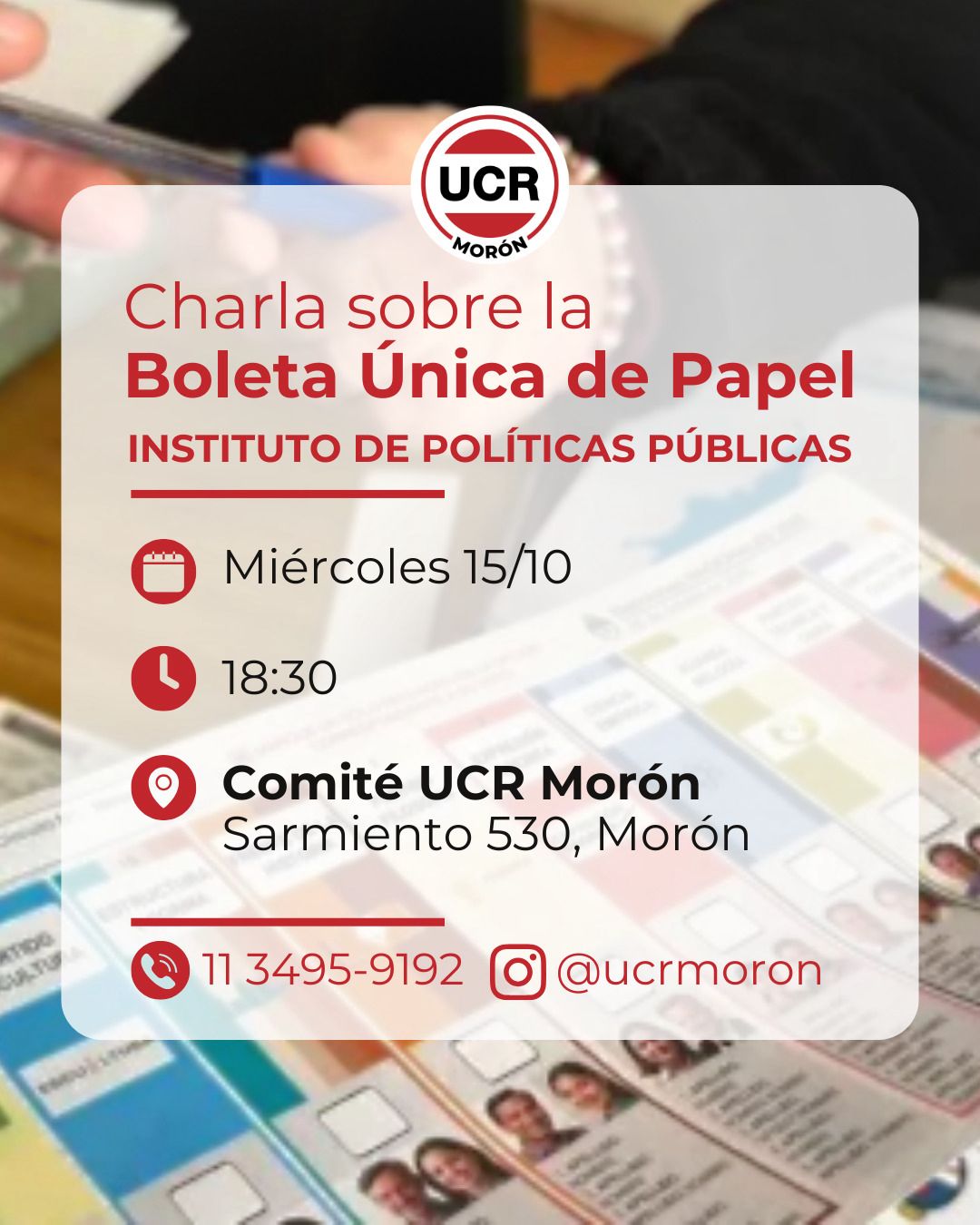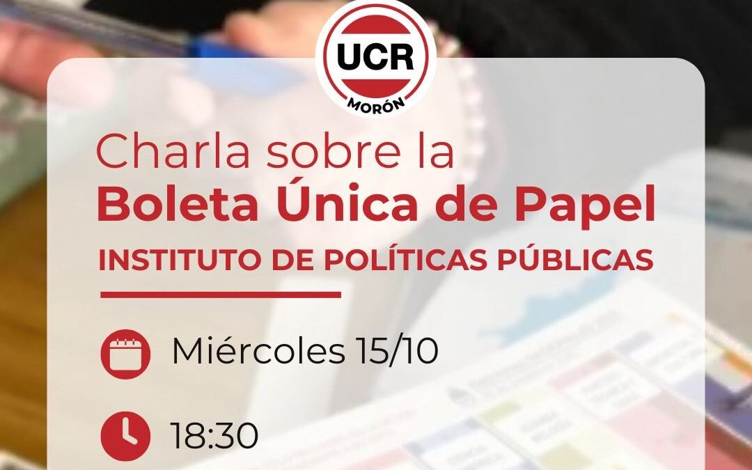 El Instituto de Políticas Públicas de la UCR Morón invita a los vecinos y vecinas a participar de una charla abierta y explicativa sobre el nuevo sistema electoral que se implementará: la Boleta Única de Papel.