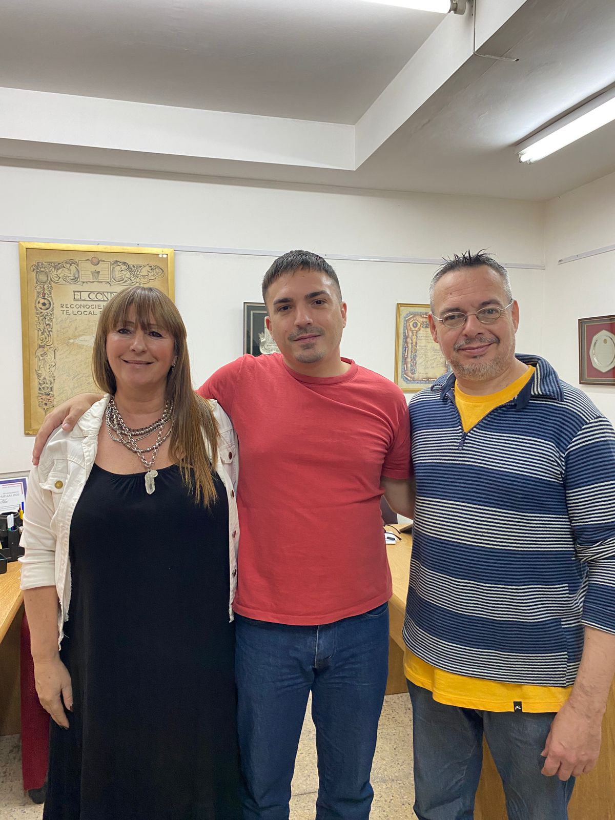 El concejal de Juntos- Coalición Cívica de Morón, Francisco Mones Ruiz (centro) junto con los comunicadores Paola Mai y Gustavo Requelme