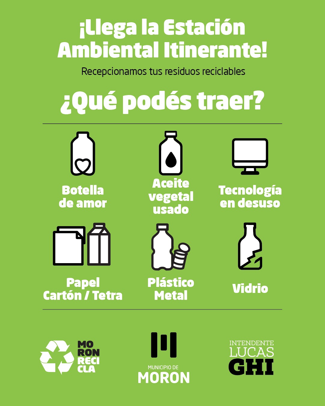 El Municipio de Morón puso en marcha la Estación Ambiental Itinerante, una iniciativa que promueve la recolección diferenciada de residuos reciclables en plazas y espacios públicos del distrito.