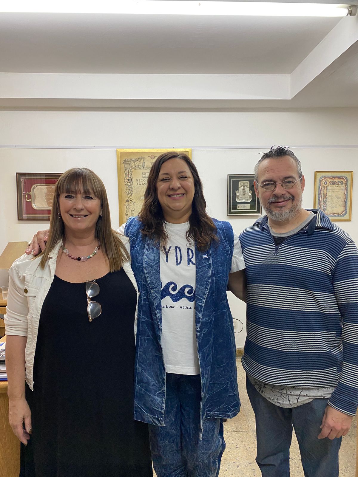 Paola Rojas, presidenta de la Cámara de Comercio, Industria y Servicio de Haedo ( centro) junto a los comunicadores Paola Mai y Gustavo Requelme