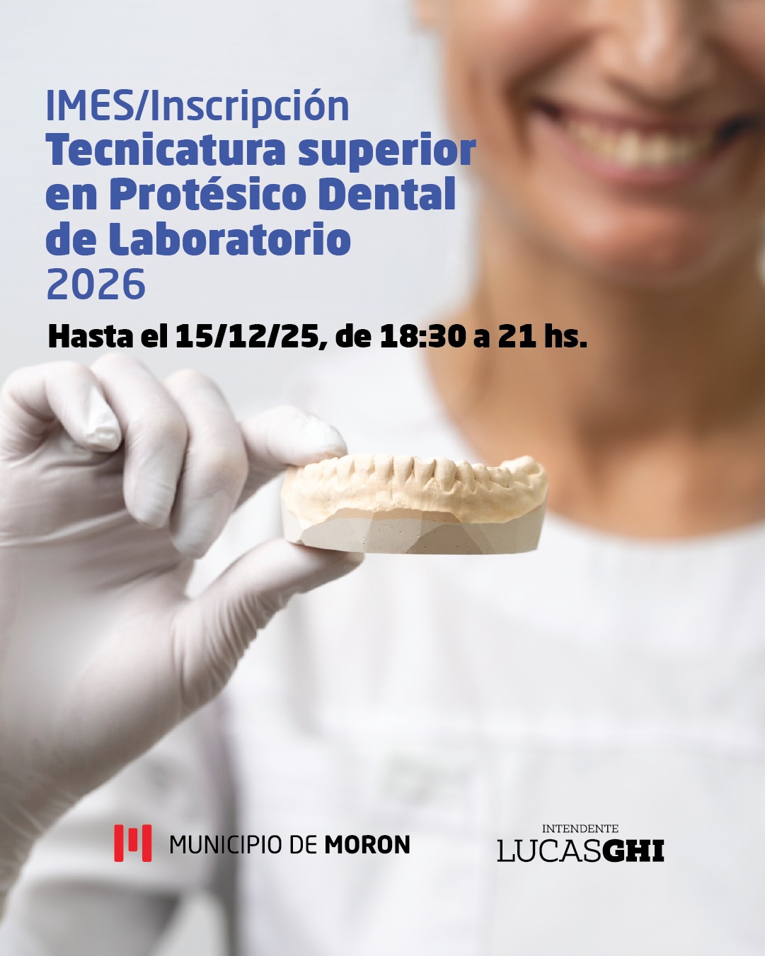 Además, también está abierta la inscripción para la Tecnicatura Superior en Protésico Dental de Laboratorio, que se desarrollará durante el ciclo 2026. Al igual que el resto de las propuestas, la inscripción es presencial en el IMES hasta el 15 de diciembre en el horario indicado.
