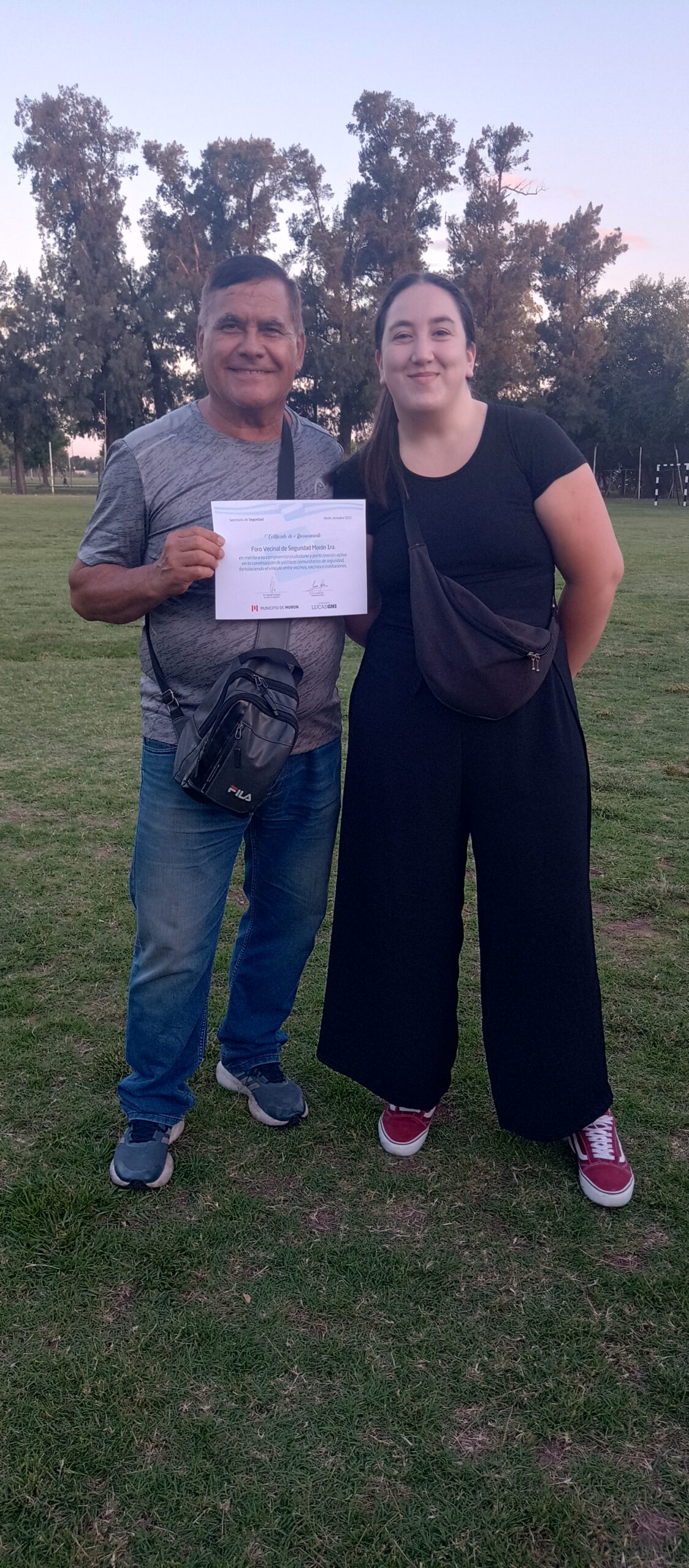 Rolando Cuenca del Foro de Seguridad Morón 1era y representante de Acim junto a Andrea Lucia SAVINI