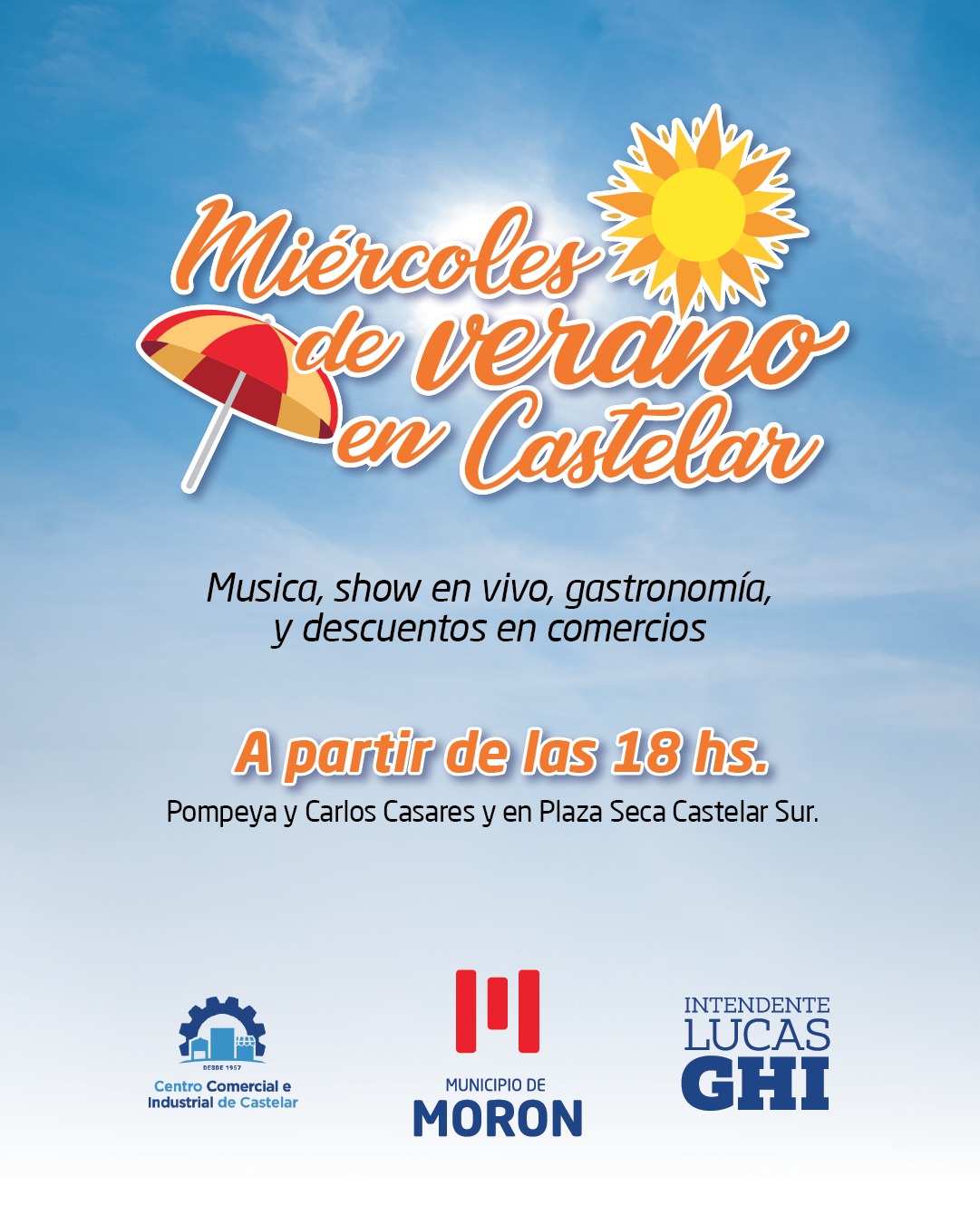 La propuesta se desarrolla todos los miércoles de enero y febrero, a partir de las 18 horas, con espectáculos artísticos en dos puntos clave: las calles Pompeya y Carlos Casares, y la Plaza Seca de Castelar Sur. La programación incluye DJs, grupos de percusión y shows en vivo que animan cada jornada y promueven el encuentro entre vecinos y vecinas.