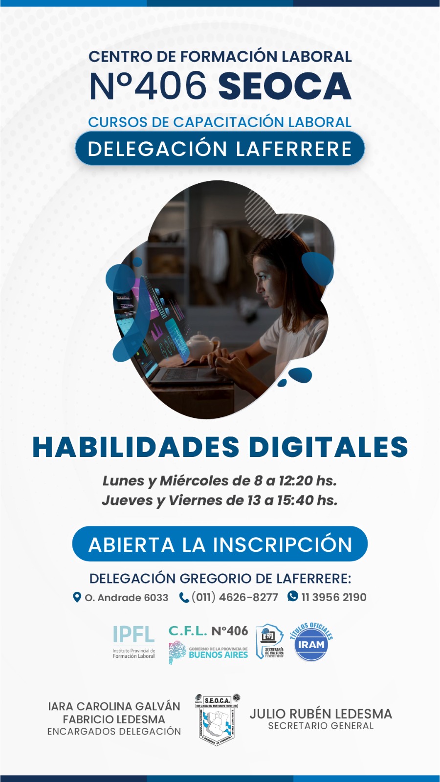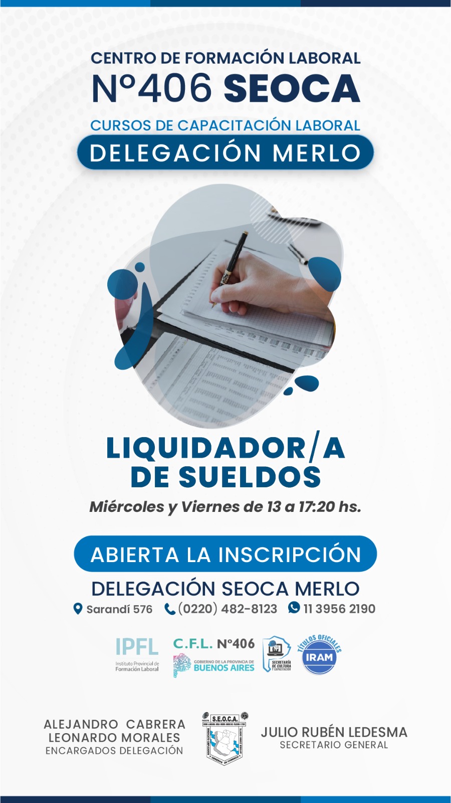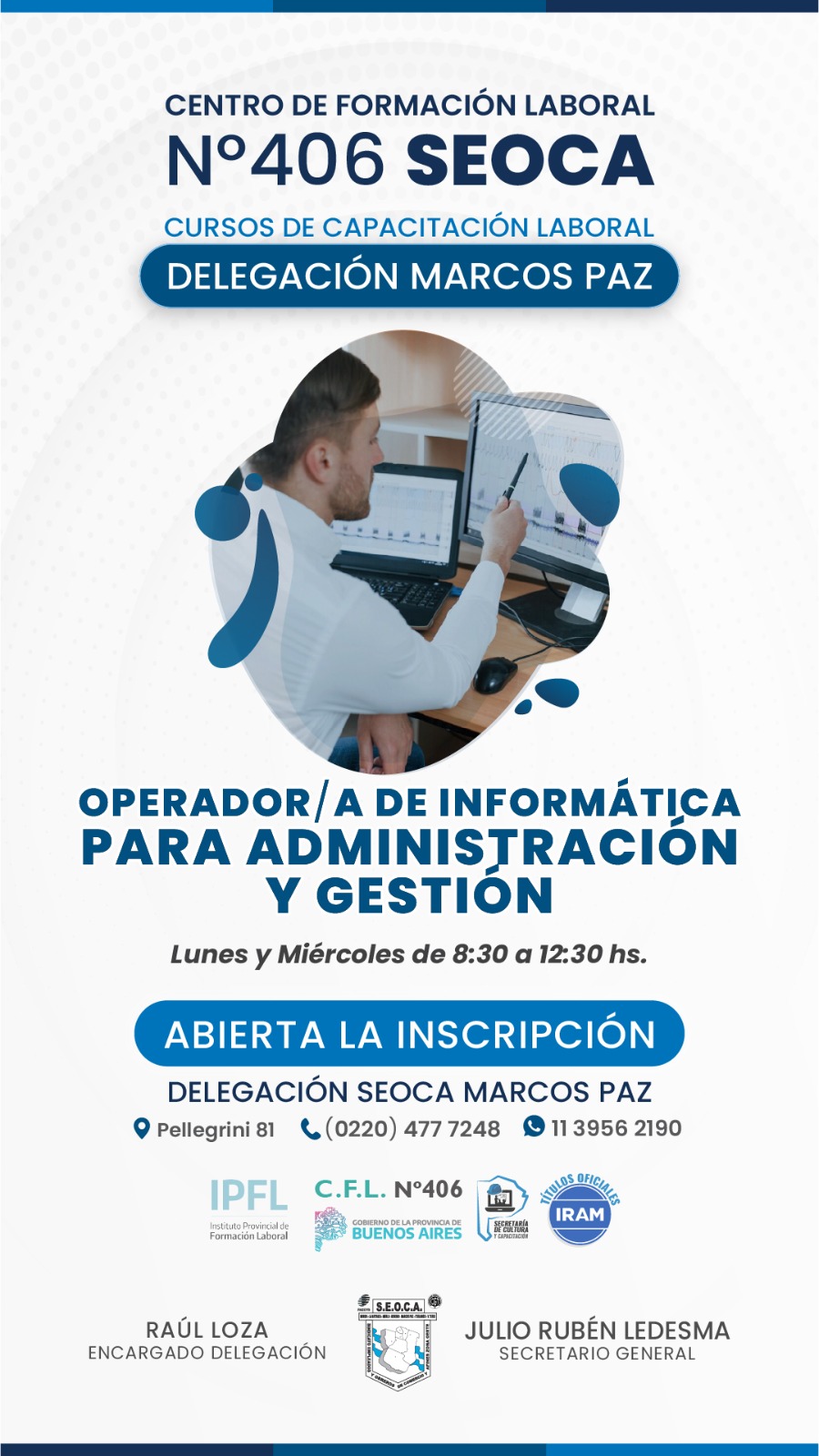 El Sindicato de Empleados y Obreros de Comercio y Afines (SEOCA) informó que se encuentra abierta la inscripción a una amplia oferta de cursos de formación y capacitación laboral que se dictarán a través del Centro de Formación Laboral N° 406, en distintas delegaciones de la zona oeste del conurbano bonaerense.