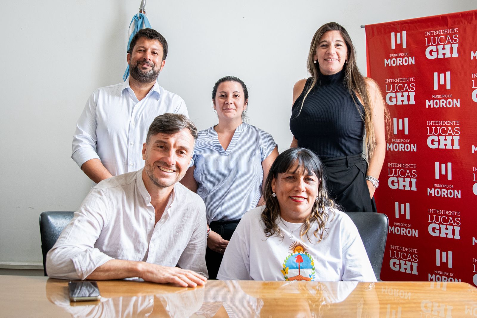 El día de la asunción: La flamante consejera junto a Lucas Ghi, la jefa de Gabinete municipal, Dra. Estefania Franco, la concejal y referente del Movimiento Evita Morón, Vanina Moro y el secretario de Producción, Santiago Muñiz