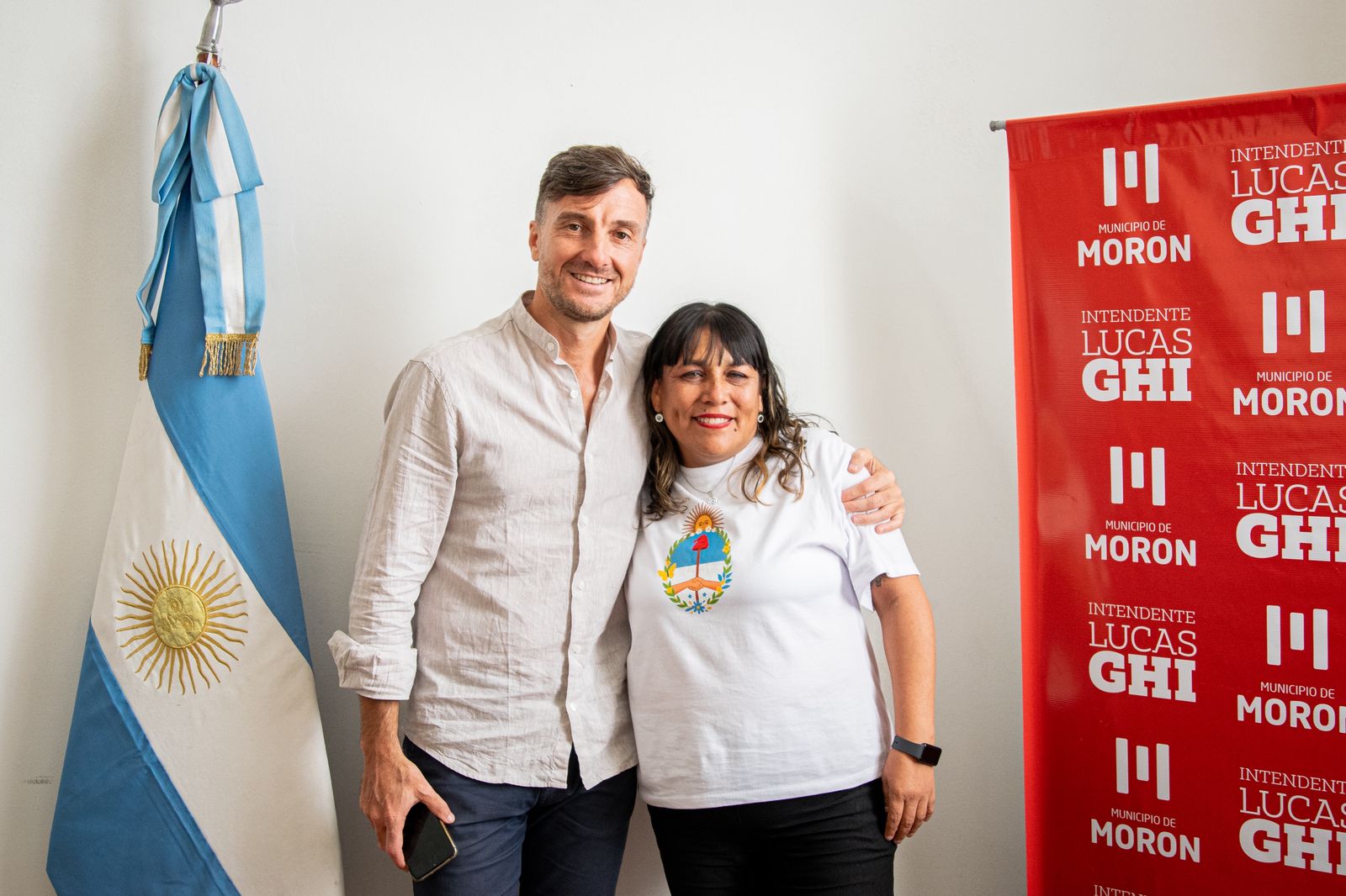 Emilse Taborda junto al intendente de Morón, Lucas Ghi