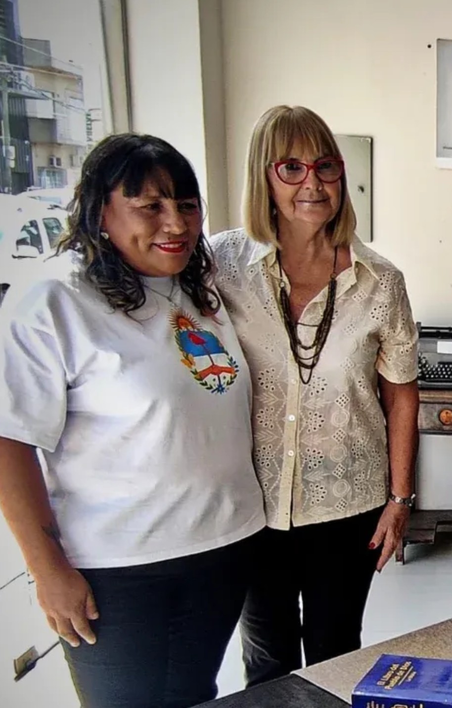 Emilse Taborda junto a la presidenta del Consejo Escolar de Morón, Mabel Mesa, el día de la jura