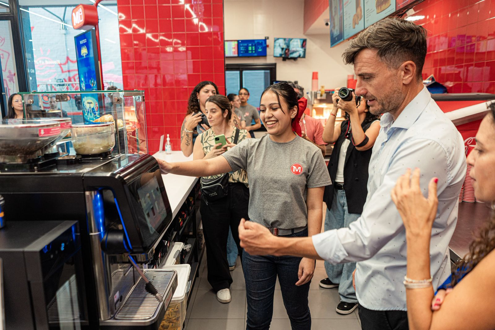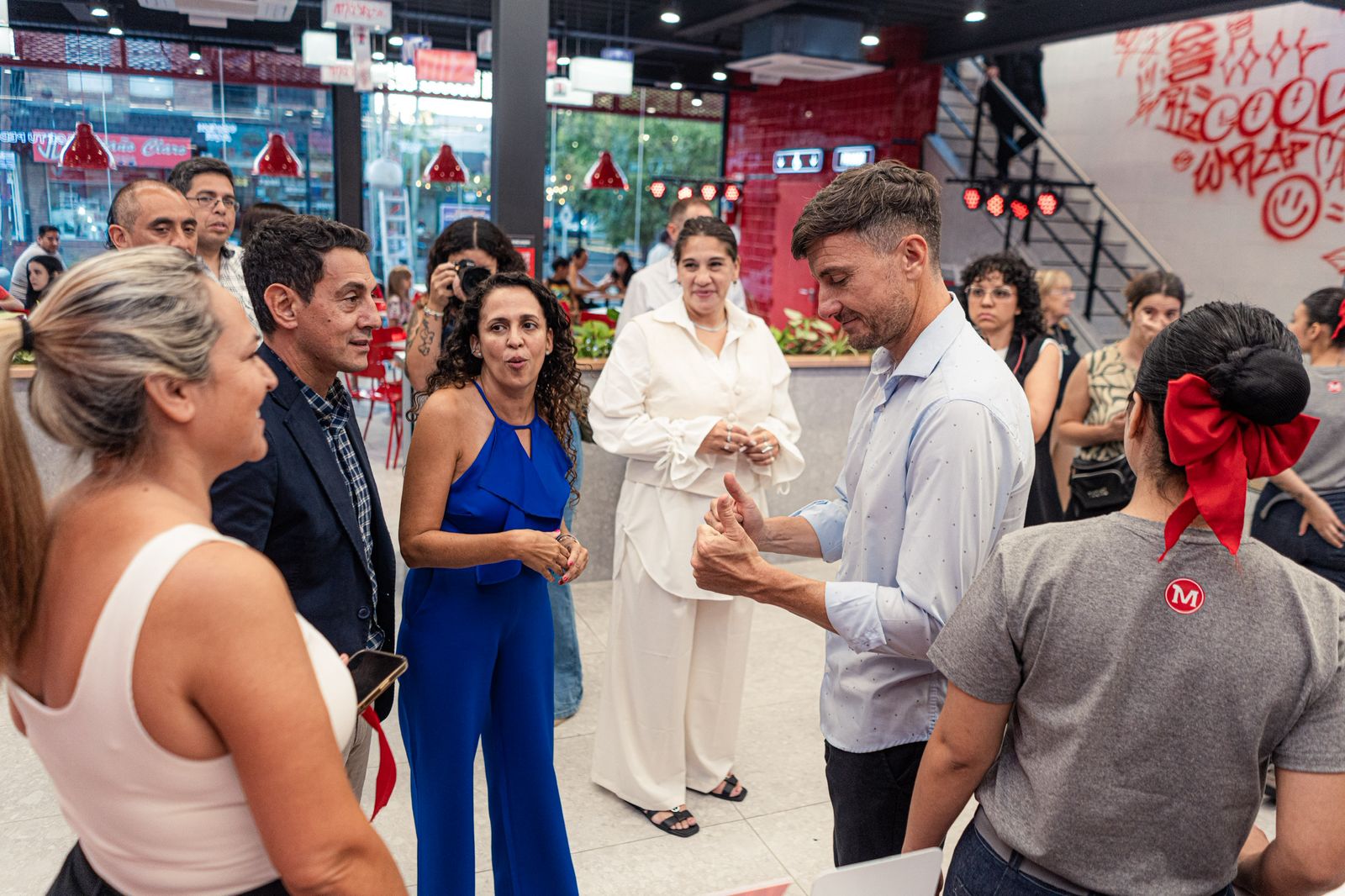 El intendente de Lucas Ghi junto a funcionarios del gabinete municipal, participó de la inauguración de una nueva sucursal de la cadena de hamburguesas Mostaza en Castelar, que permitió la incorporación de 80 trabajadores y trabajadoras del distrito a través de la Agencia de Empleo municipal.
