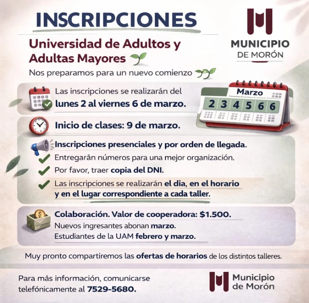 INFORMES: 7529-5680, de lunes a viernes de 8 a 16 horas. @adultxsmayores_uam_moron