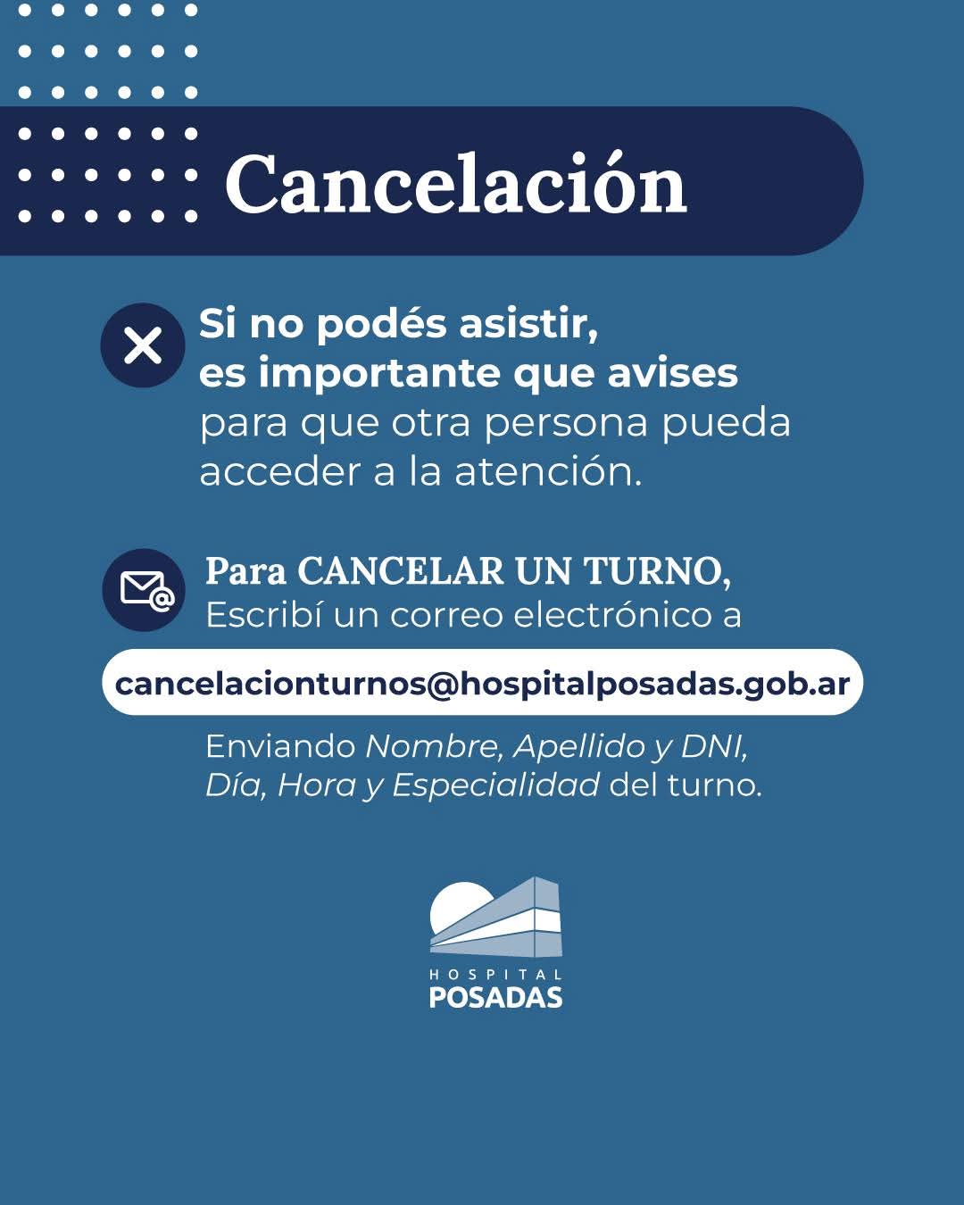 Desde la institución recuerdan la importancia de cancelar el turno con anticipación en caso de no poder asistir, para que otro paciente pueda utilizar ese espacio.