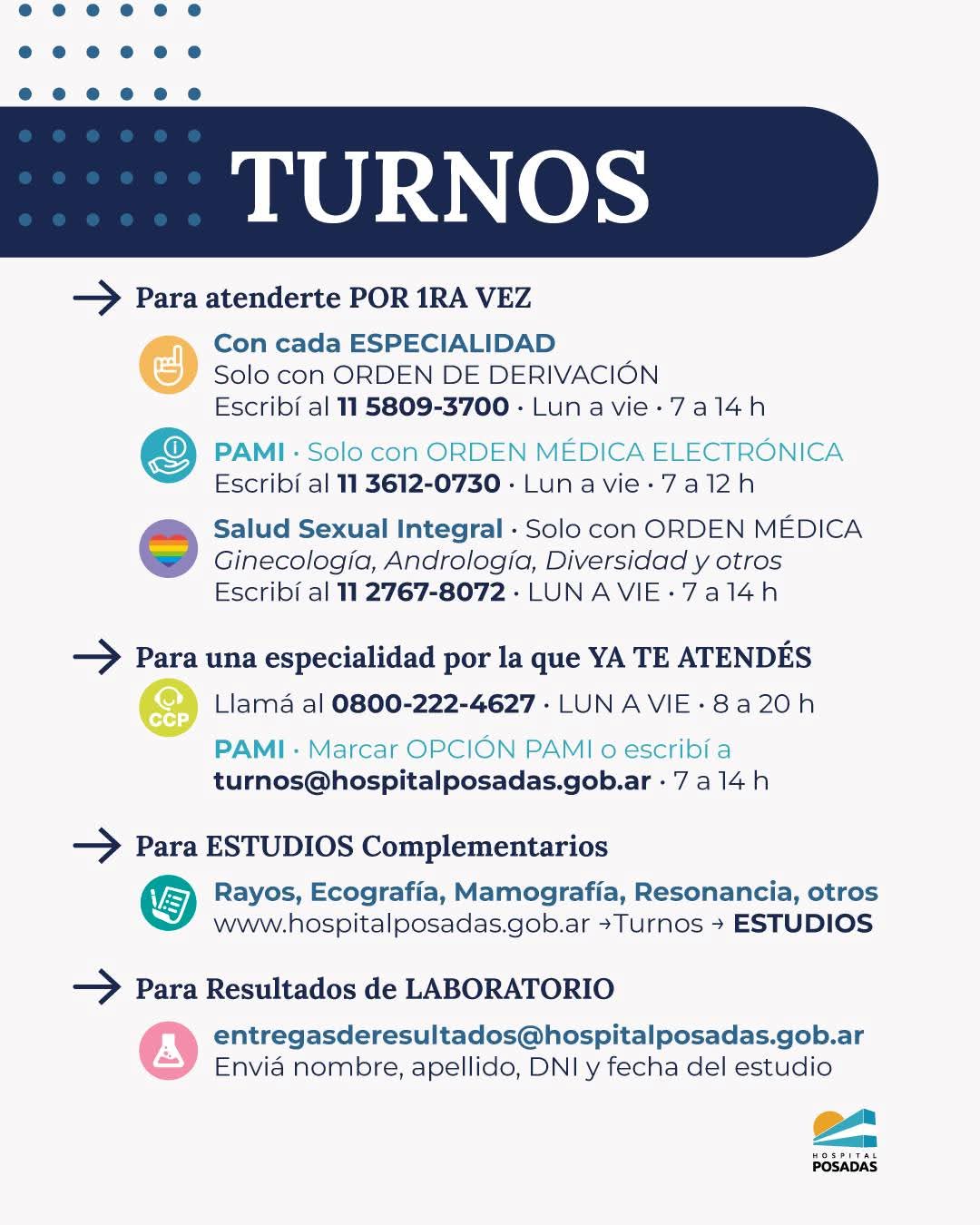 El Hospital Nacional Profesor Alejandro Posadas informa a la comunidad los distintos canales habilitados para solicitar y cancelar turnos correspondientes a las diversas especialidades médicas que brinda la institución.
