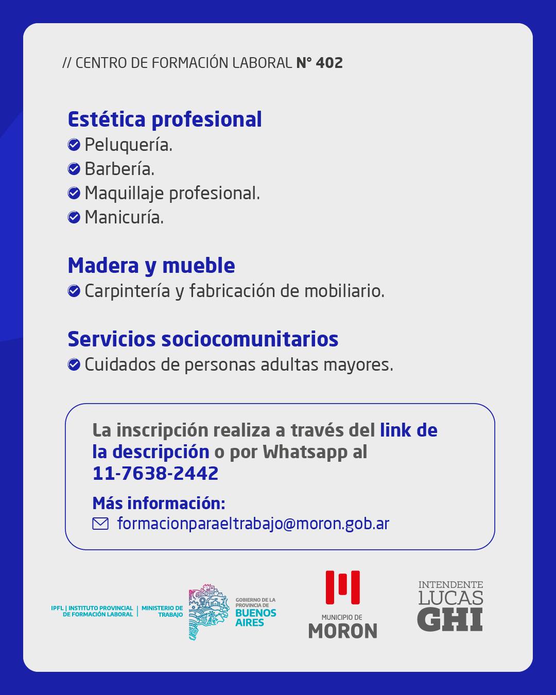 WhatsApp al 11 7638-2442 formacionparaeltrabajo@moron.gob.ar.