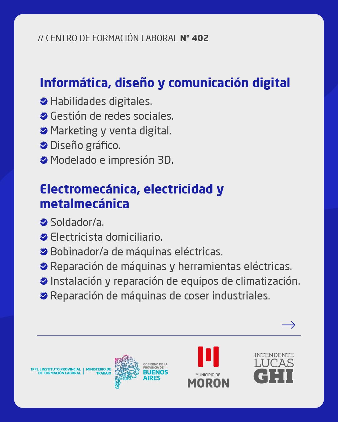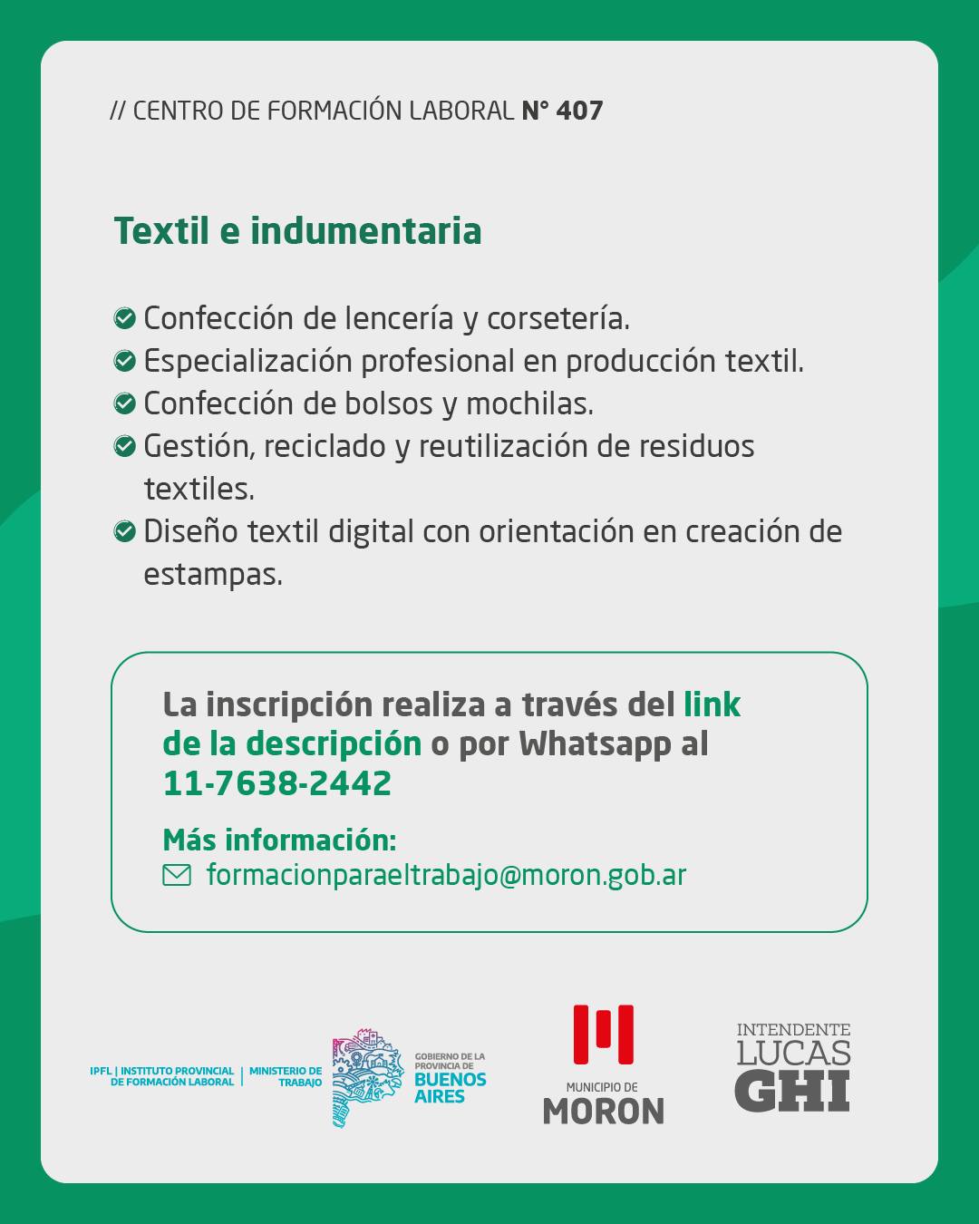 WhatsApp al 11 7638-2442 formacionparaeltrabajo@moron.gob.ar.