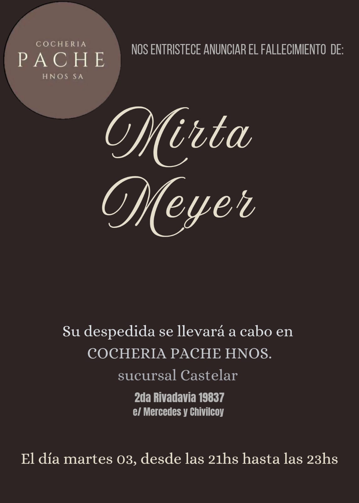 MORÓN Y LALCEC DE LUTO: FALLECIÓ MIRTA MEYER