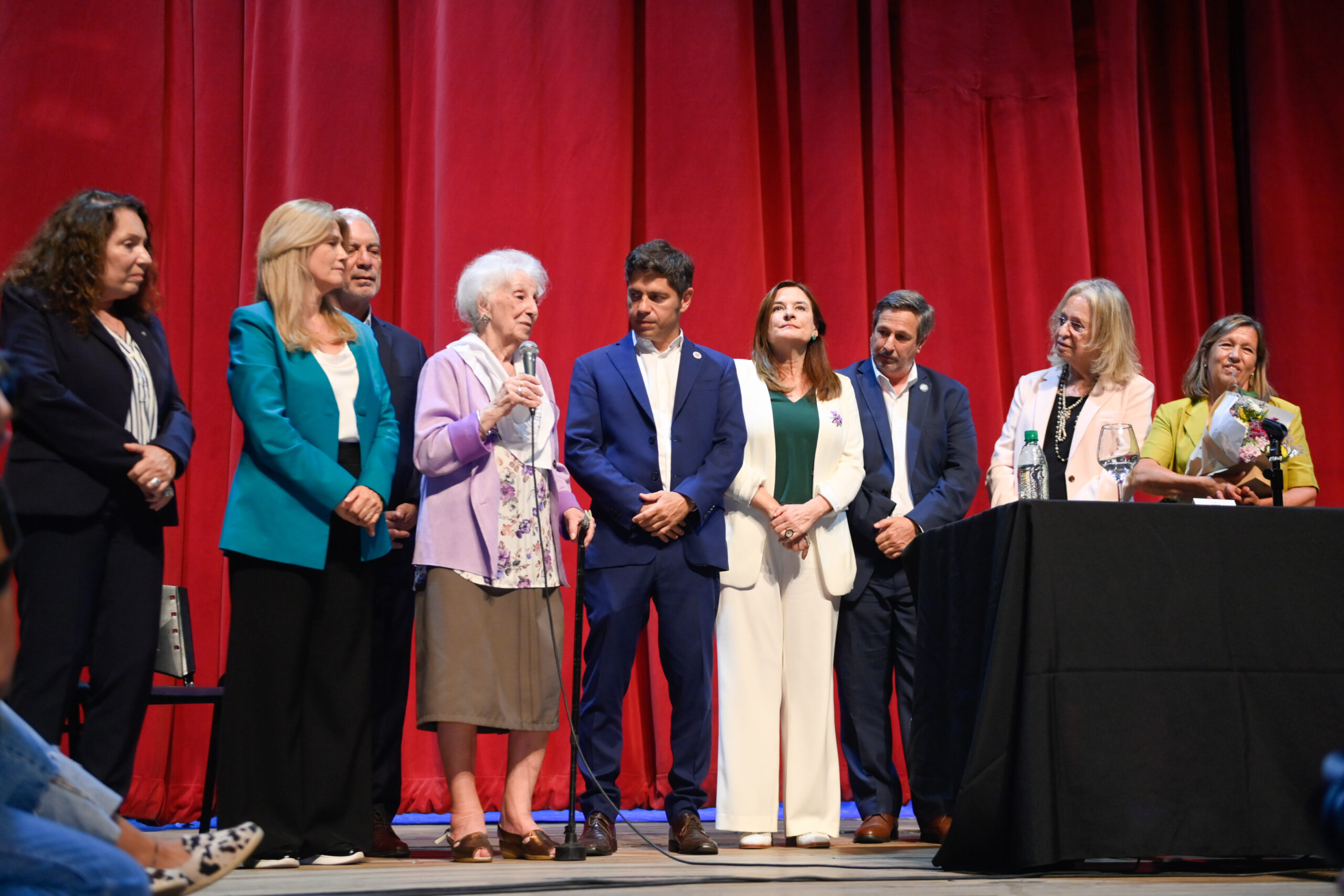 El encuentro fue en la Sala Ginastera del Teatro Argentino, con la especial presencia del gobernador de la provincia de Buenos Aires, Axel Kicillof, la vicegobernadora Verónica Magario; la ministra de Mujeres y Diversidad, Estela Díaz; la presidenta de la SCBA, Hilda Kogan; el presidente del Colegio de Magistrados, Matías Rappazzo; y el intendente local, Julio Alak.