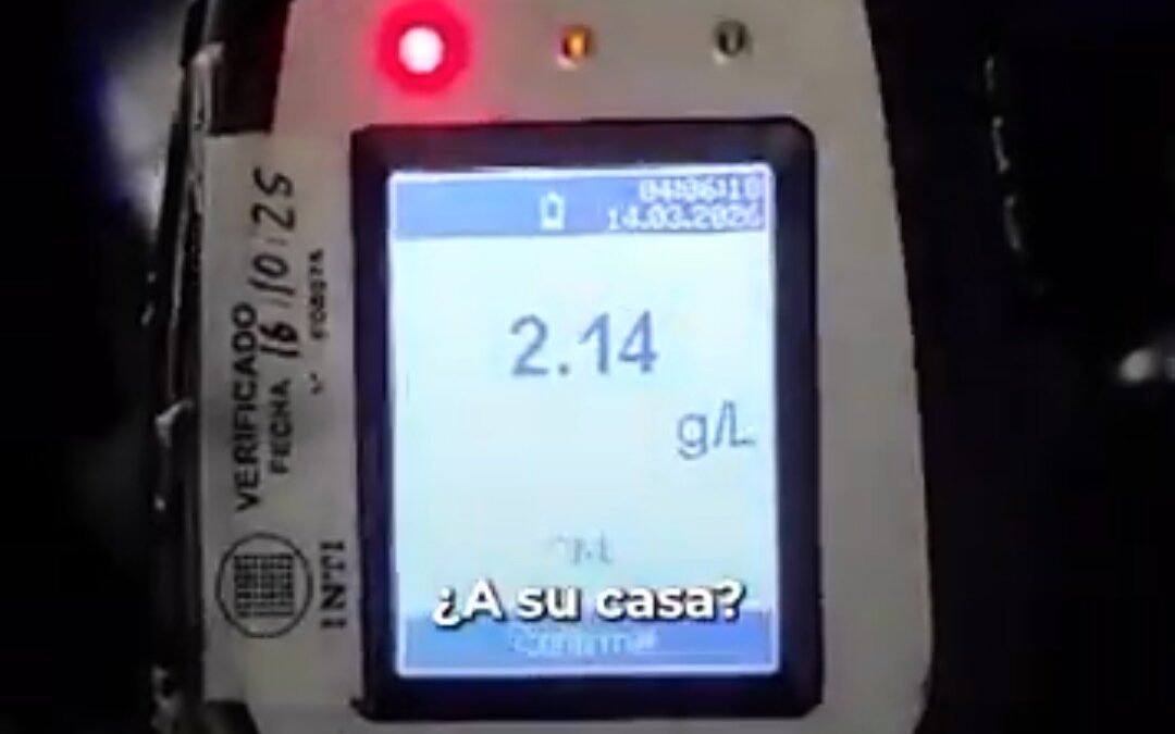 La otra alcoholemia positiva máxima se registró en Bahía Blanca, mientras que el test de 2,14 g/l ocurrió sobre la Ruta Nacional 9, donde el conductor minimizó la situación al decir que venía de “tomar una copa” en la casa de un amigo.